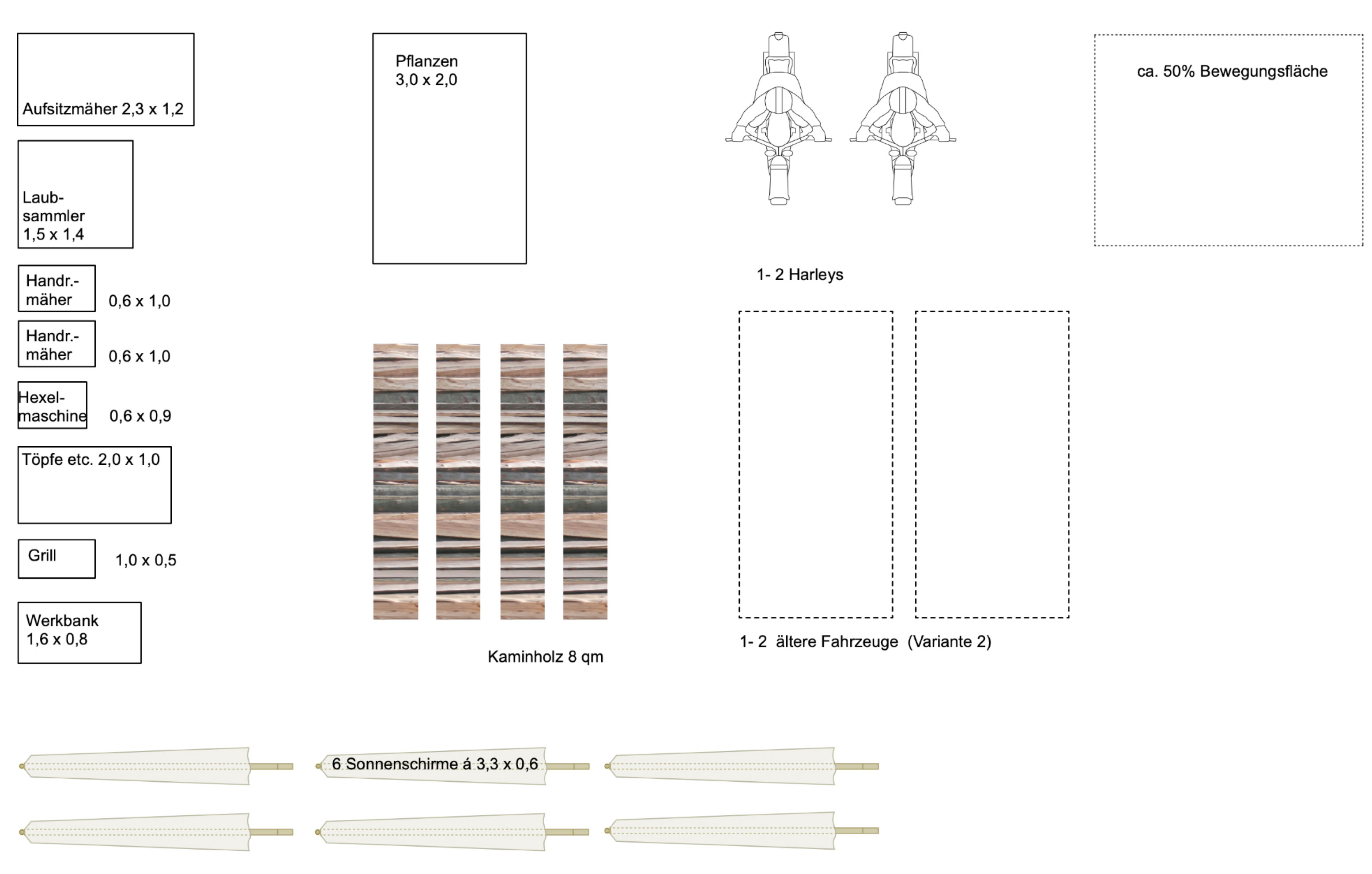 In dem großen Garten eines Anwesens, das aus alten „bäuerlichen“ Fachwerkhäusern und modernen baulichen Ergänzungen besteht, möchte der Eigentümer ein Bauwerk, das verschiedene Nutzungen beinhalten soll, errichten: