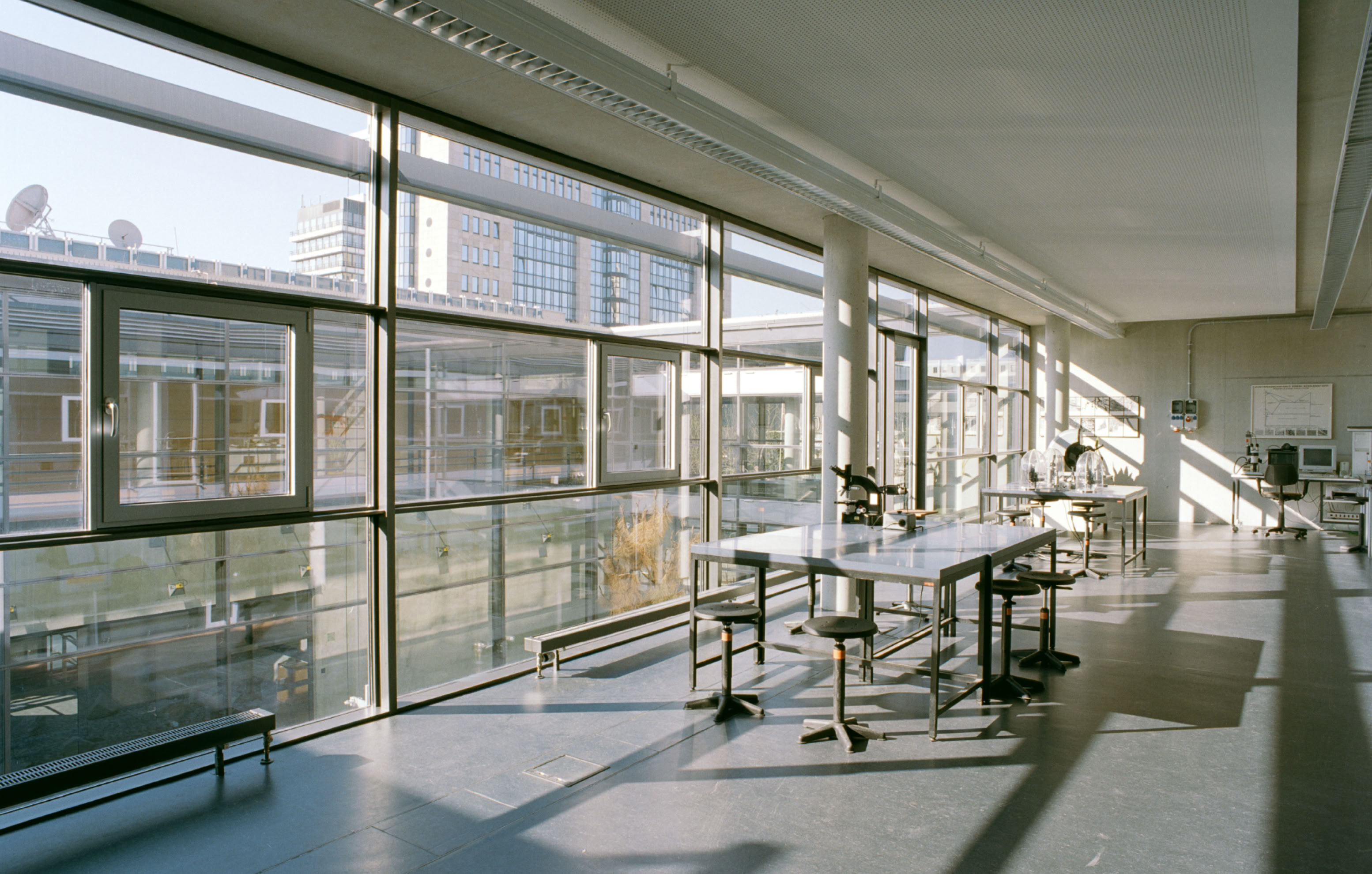 Der Neubau beherbergt die Fachbereiche Mikrotechnologien, Maschinenbau und Medien. Realisiert wurden hochspezialisierte Laborbereiche (u.a. Reinräume für die Mikrochipproduktion, Raum-in-Raumkonstruktionen für digitale Studioräume und Akustikabore, Meßtechniklabore für chemische und physikalische Forschung).