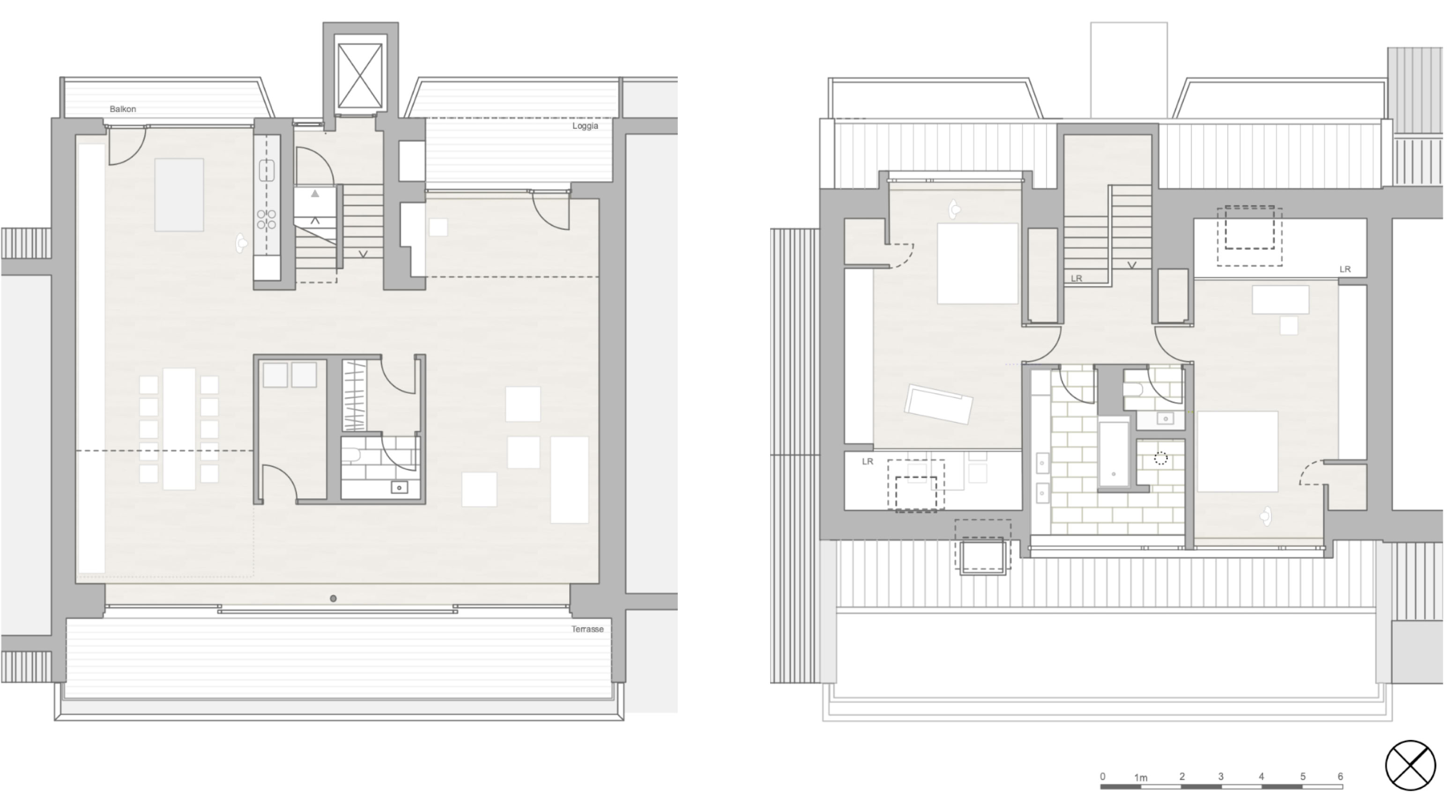 Die bestehenden Dachgeschosswohnungen waren zusammen mit dem teilausgebauten Spitzboden zu einer hochwertigen Wohneinheit zusammenzufassen.